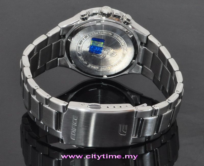 EDIFICE logo stamped on the crown, back cover, and buckle