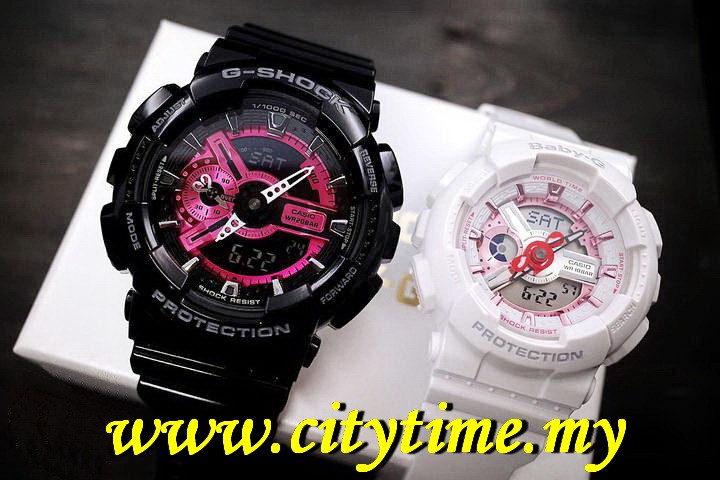 Casio G-SHOCK & BABY-G Valentine's Day Collection Flamingo Theme Black White Pink Couple Watch SLV-19A-1ADR