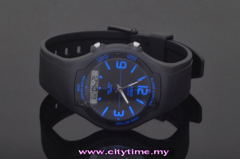 CASIO Men Ana-Digi Dual Time Rubber Strap Watch AW-90H-2BVDF