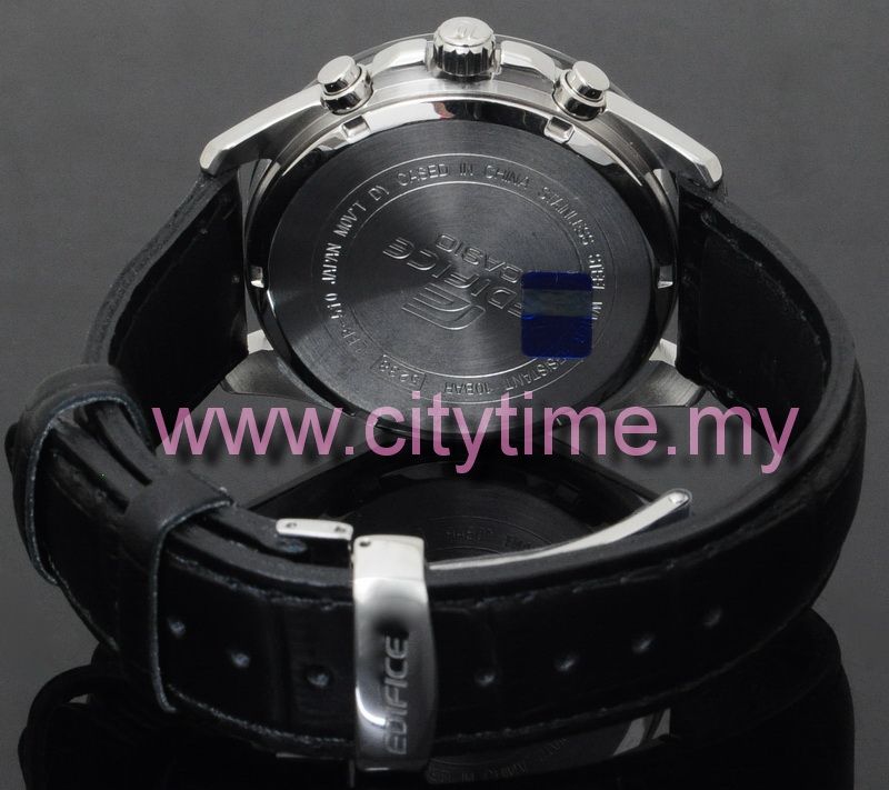 EDIFICE logo stamped on the crown, back cover, and buckle