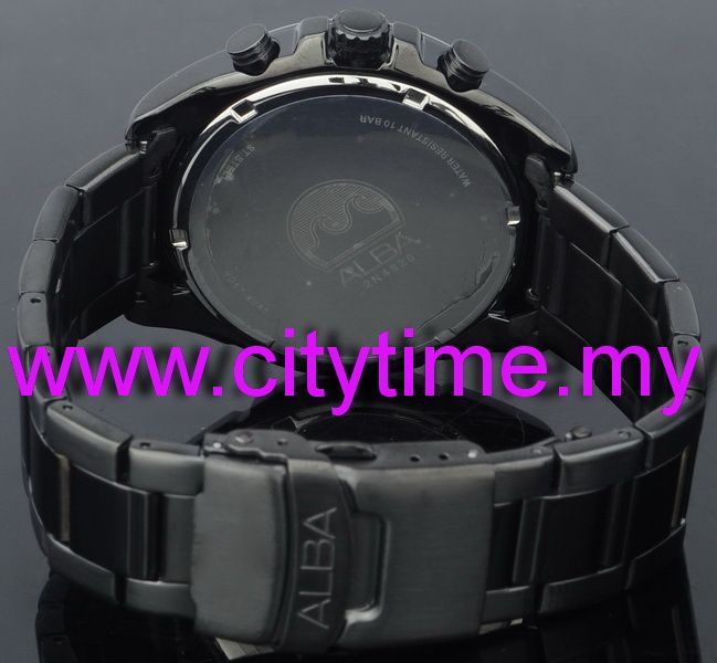Alba Men Chronograph Black Strap Watch VD57-X041PVD