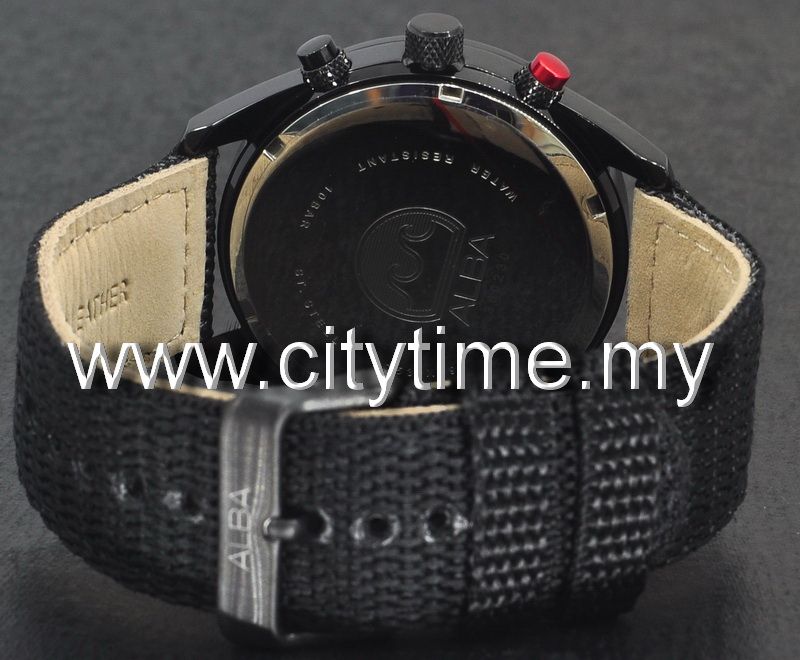 Alba Men Chronograph Leather Nylon Watch VD53-X095PVD