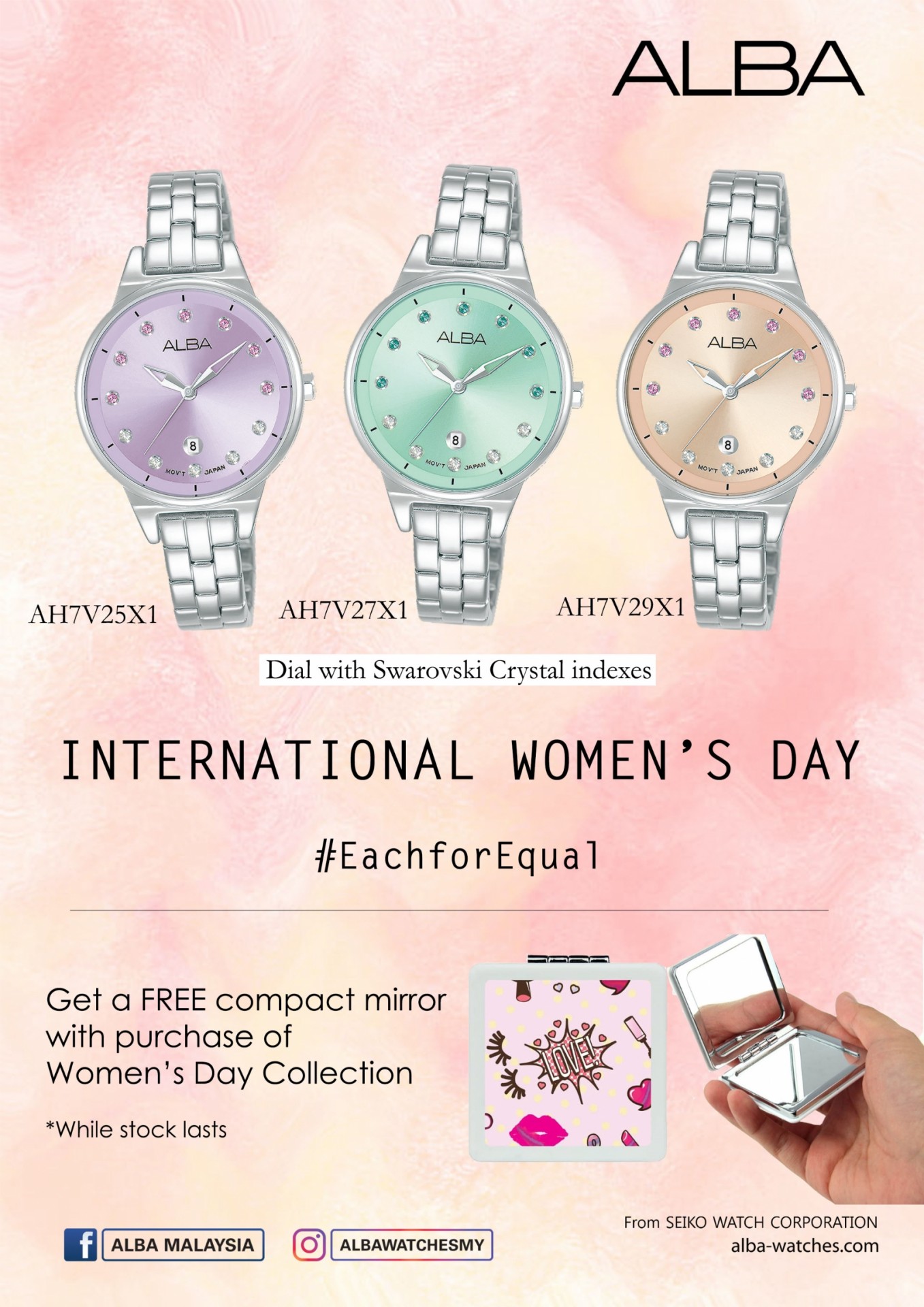 ALBA Ladies Swarosvki Crystal Women's Day Collection Watch VJ22-X309PUSS