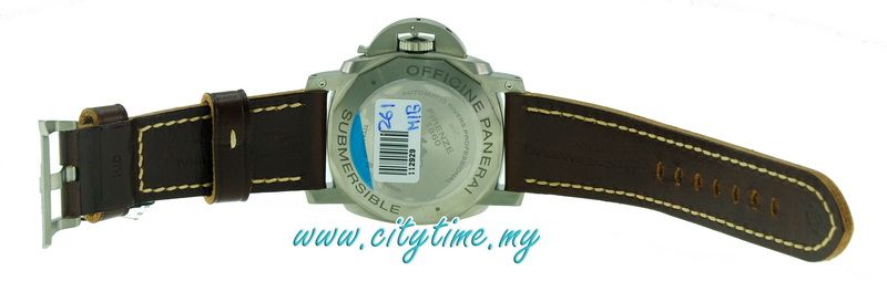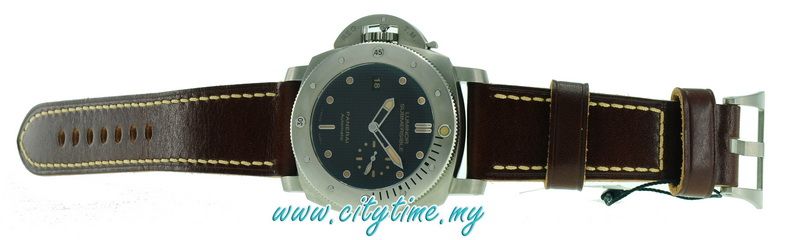 STRAP: PANERAI personalised leather strap and trapezoidal brushed titanium buckle. Supplied with a second interchangeable strap, a tool for changing the strap and a steel screwdriver.
