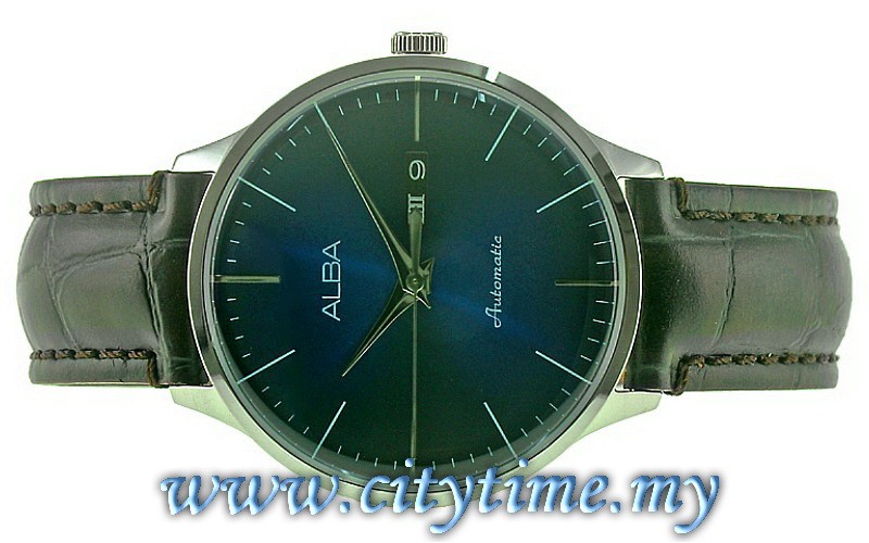 ALBA Men SIGN A Automatic Day Date Leather Watch Y676-X023BLSL
