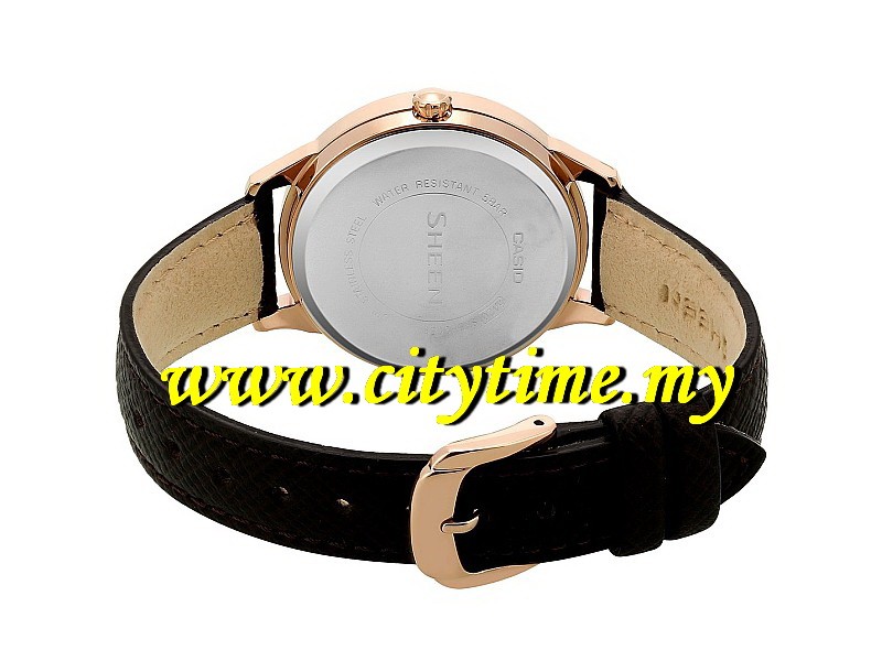 Casio SHEEN Ladies Multi Hands Swarovski Leather Dress Watch SHE-3058PGL-5AUDR
