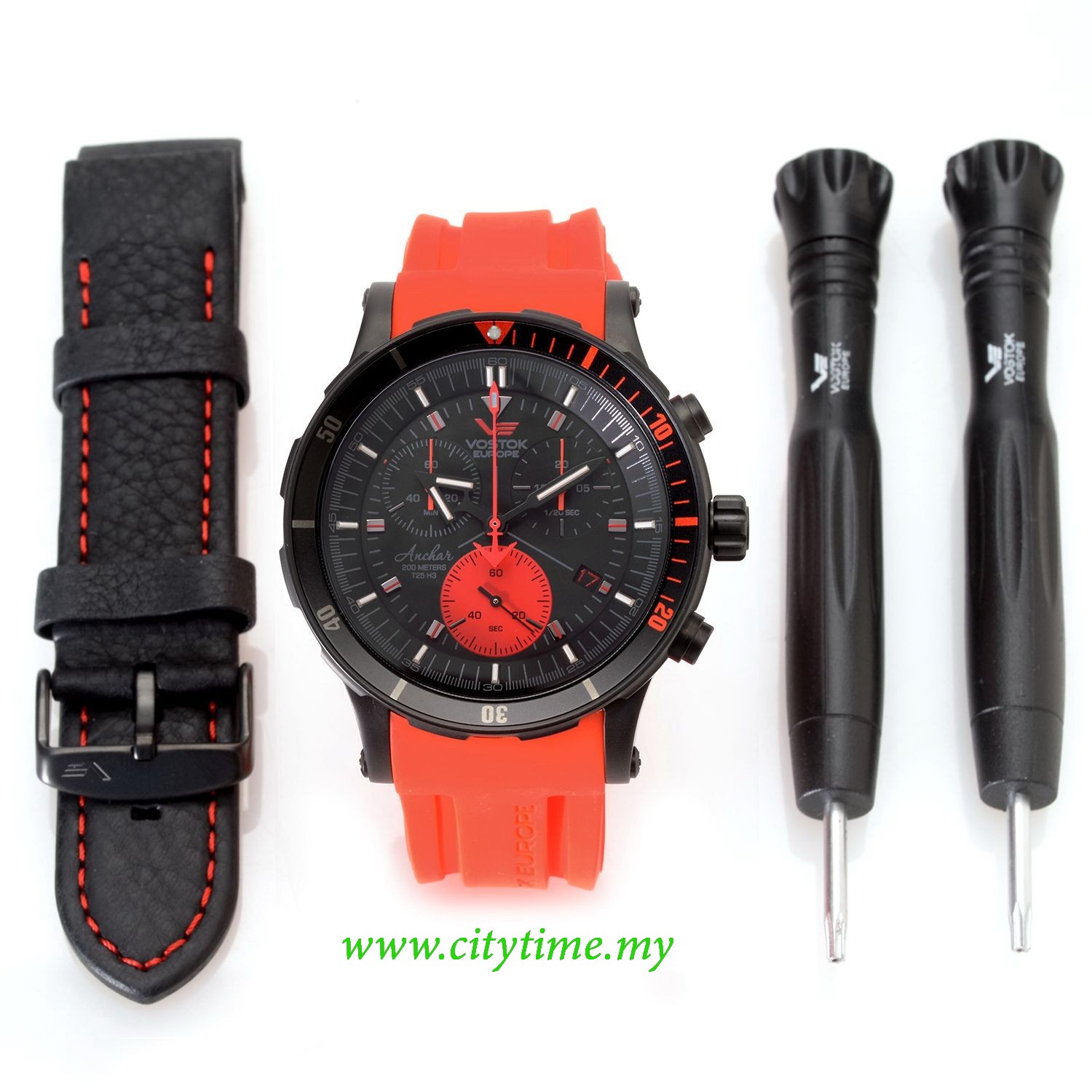 Strap / bracelet: leather and silicone strap is supplied in a watertight box