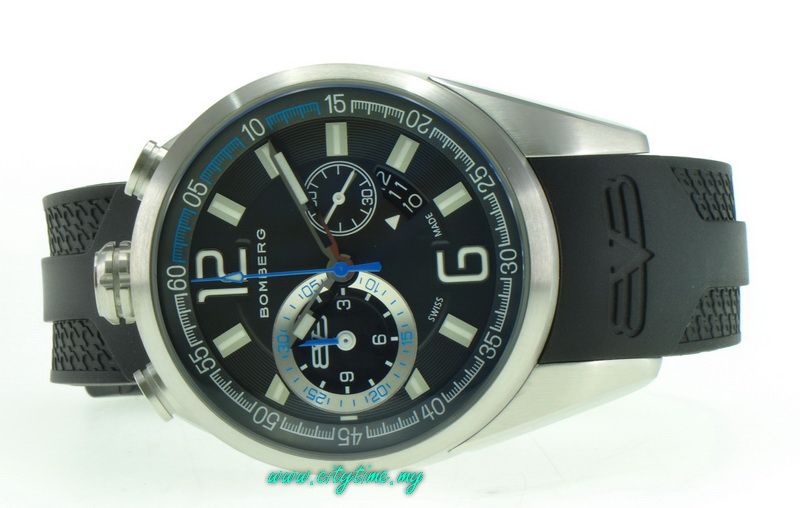 - Functions: Hour, minute, sweep second at centre, chrono counters 9h (1/10 sec. / 10hours) and 6h (30min.), small second 3h.