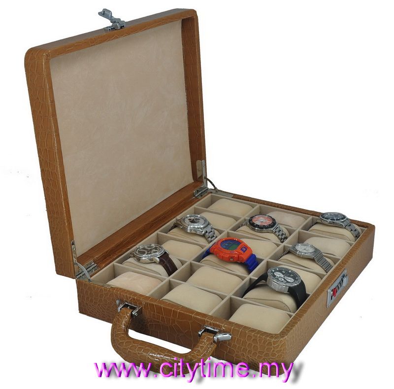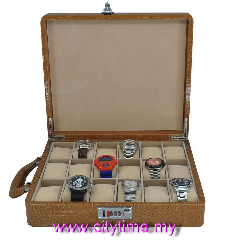 18 pc Watch Box Display Storage Combination Number Lock Case Light Brown